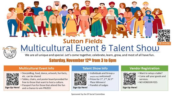 We know this neighborhood has some amazing talent! Come out and shine in our first ever, Sutton Fields Talent Show! Prizes will be awarded for the top 3 talents!Learn more about Multicultural Event and/or the Talent Show by clicking on the links below.